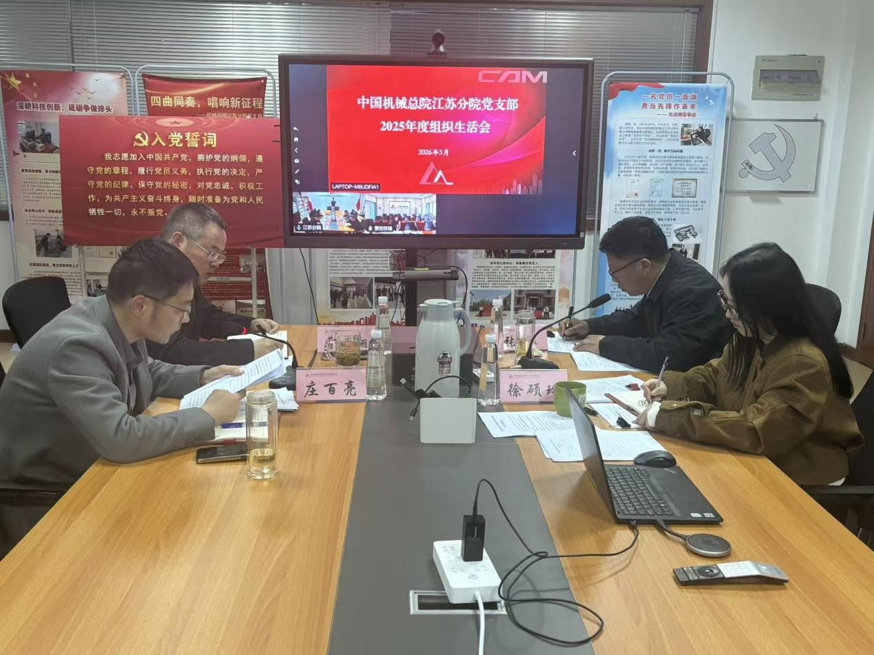 按照集团党委统一部署要求,近日,江苏分院党支部召开2025年度组织生活会。分院党支部书记、董事长、总经理曹云翔主持会议并讲话,支委班子全体成员参加会议。集团党群工作部副部长张晓惠以视频形式到会督导。