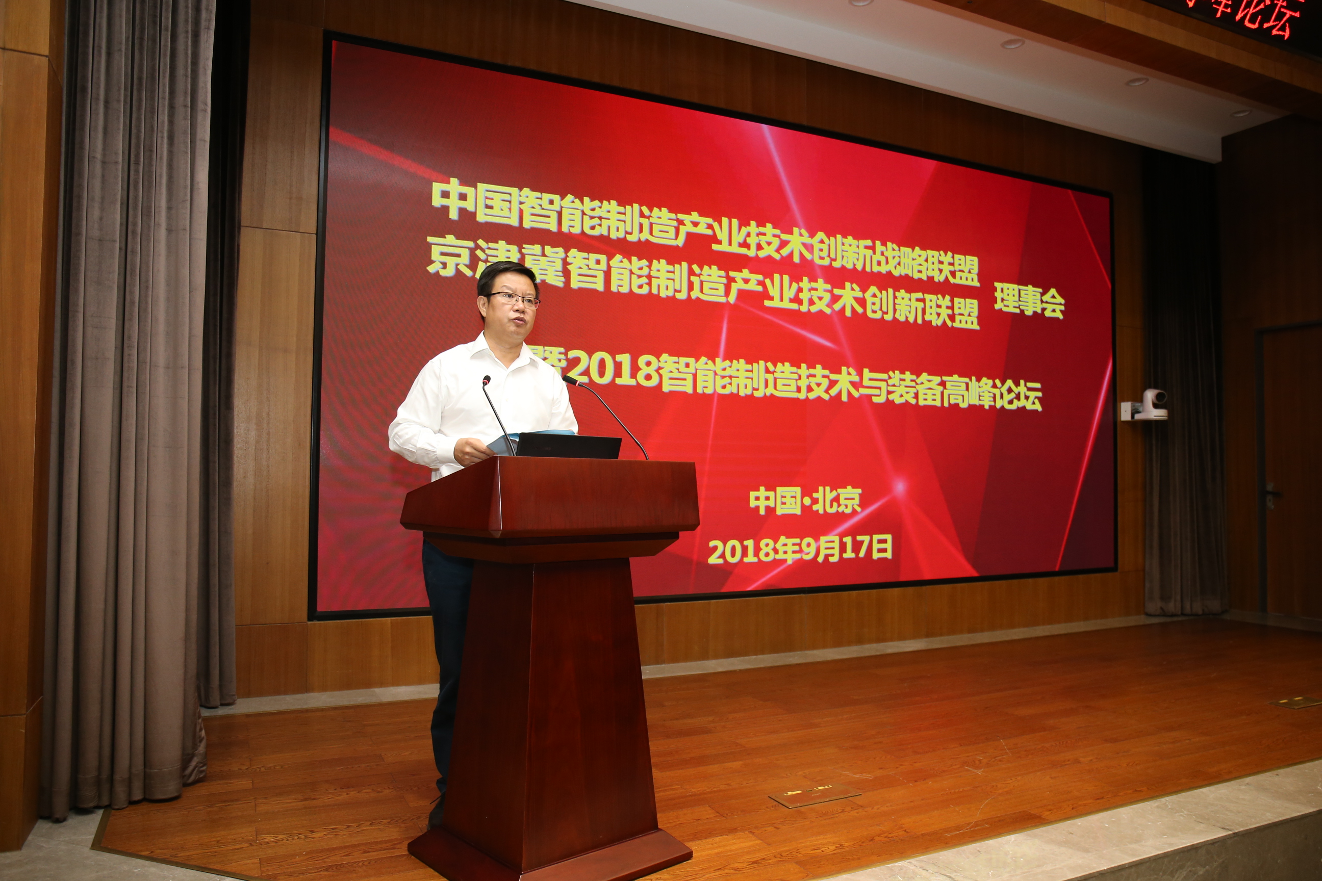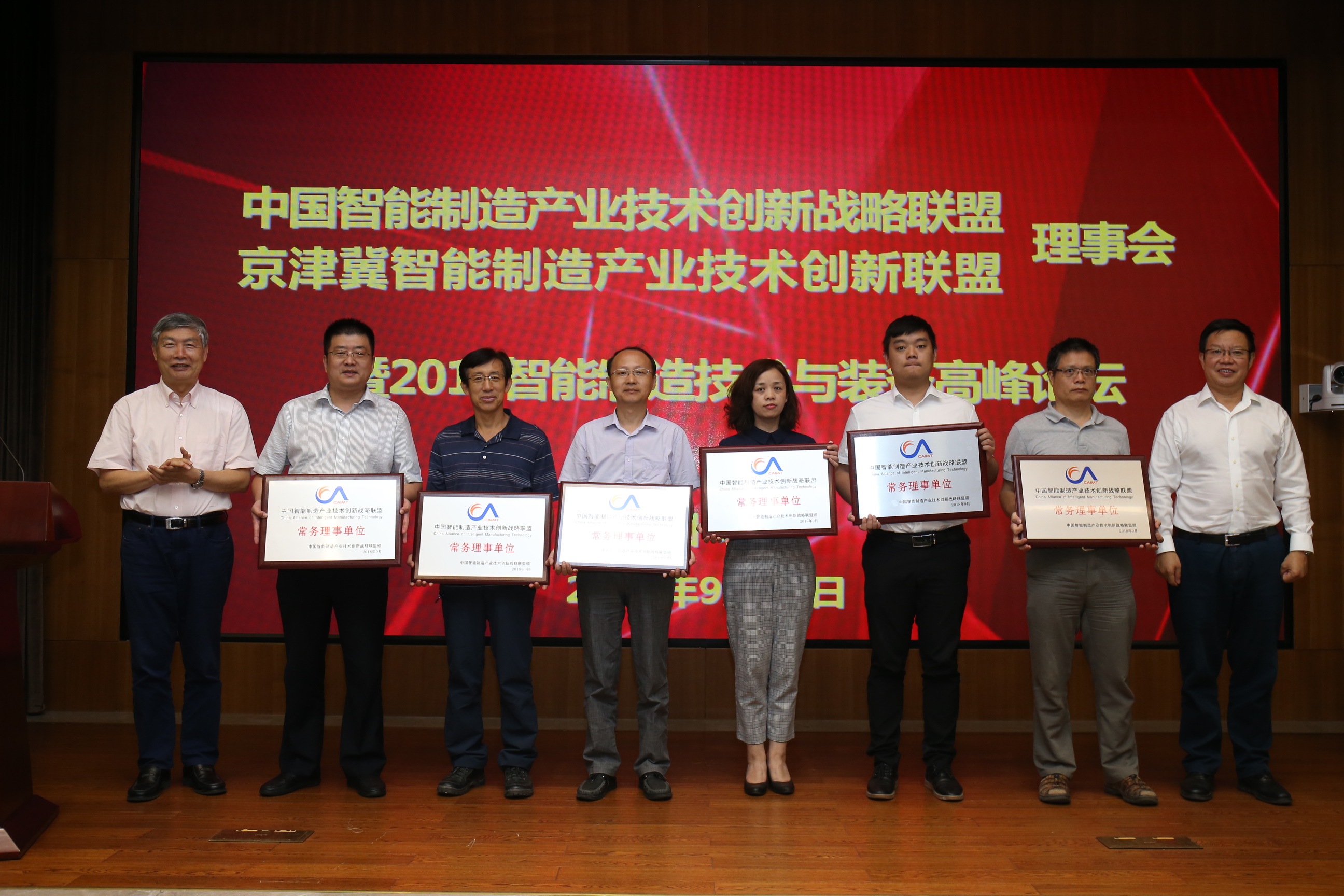 2018年9月17日,中国智能制造产业技术创新战略联盟、京津冀产业技术创新战略联盟暨2018智能制造技术与装备高峰论坛在京隆重举行。中国工程院原院长周济院士、联盟会长李培根院士、哈尔滨工业大学邓宗全院士、联盟理事长机械总院集团党委书记、董事长、总经理王德成、联盟副理事长中国船舶重工集团公司副总经理杜刚,联盟专家委员中国工程院制造业研究室专家董景辰、中国纺织机械器材工业协会总工程师祝宪民,中国一汽、中国中车、中国信通科技、西安交通大学等60家联盟理事单位、100余人参会,会议由机械总院集团副总经理、中国智能制造联盟专家常务副主任委员、秘书长单忠德主持。