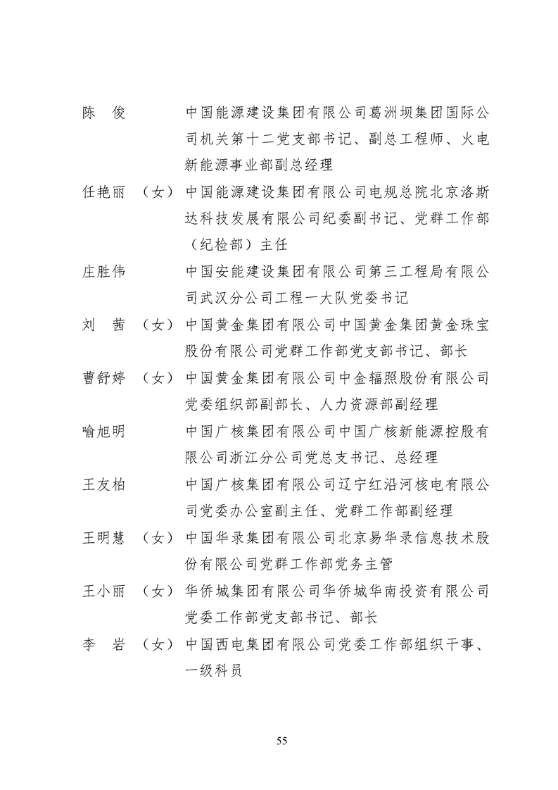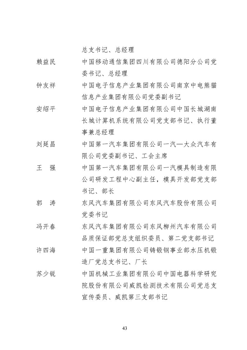 为表彰先进、弘扬正气,激励各级党组织和广大共产党员在把握新发展阶段、贯彻新发展理念、构建新发展格局中奋发有为、建功立业,国资委党委决定,授予邢继等338名共产党员“中央企业优秀共产党员”称号(含追授2名),授予王军艳等205名党务工作者“中央企业优秀党务工作者”称号,授予中国核工业集团有限公司福建福清核电有限公司党委等448个基层党组织“中央企业先进基层党组织”称号。这次表彰的优秀个人和先进集体是中央企业各条战线上的杰出代表,他们的先进事迹和崇高精神充分展示了新时代共产党人的先进性和纯洁性,生动诠释了中央企业共产党员的初心和使命,彰显了国有企业先进精神的无穷伟力。